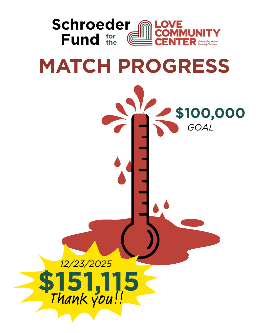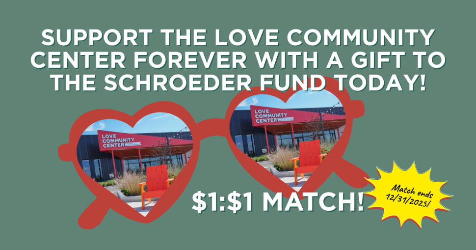 Double Your Love for the LCC 10th December 2025 We STILL need your help!Donate Now The Love Community Center (LCC) has become the heart of Rush County. Even before the first dollars were secured in late 2020 to build it, we knew it would happen. We’re just like that around here. But we realized that it would take all of us to support it for generations to come. It needed its own fund. Enter Wilma Jo Kile, long-time RCCF supporter and Rush County community leader. In the fall of 2020 she started the Ebert H. and Bessie M. Schroeder Fund in memory of her parents and to support a community center. “I can think of nothing else that would provide the value-added amenities that a multipurpose community center would provide to the residents of Rush County,” she shared. In 2024 her daughter and son-in-law added a seven-figure gift and their names to the completed building – the Love Community Center Presented by Jay and Christie (Kile) Love. Fast-forward to today. The LCC is the thriving hub we dreamed it would be. Let’s make sure it stays that way. Here’s a special opportunity to DOUBLE your love for the LCC. Now through December 31, 2025, your gifts to the Schroeder Fund will be matched 1:1! $10 becomes $20. $100 becomes $200. Every $1 you give becomes $2 and helps us earn the full $100,000 match. Every dollar goes to work creating a permanent income stream to support this incredible resource, year after year. Support the LCC forever with a gift to the Schroeder Fund today. All that love adds up fast! But don’t hesitate, this offer won’t last forever. Give online now or mail/drop off a check to RCCF, 117 N Main St, Rushville, IN 46173.