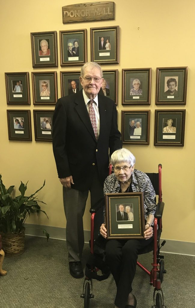 Ken and Charlotte Brashaber Recognized for Contributions to the Rush County Community Foundation On the evening of Tuesday, September 26, the Board of Directors of the Rush County Community Foundation recognized Ken and Charlotte Brashaber’s contributions to the Rush County Community Foundation with a picture presentation. Alisa Winters, Executive Director of the Rush County Community Foundation, shared of Ken and Charlotte’s generosity and presented a framed photo of Ken and Charlotte created by Green’s Photography. After the conclusion of the presentation, the photo was added to the Foundation’s Donor Wall. The Donor Wall at the Rush County Community Foundation was created in the early 2000’s to honor donors that have contributed $50,000 or more to the Foundation. In the past three years, Ken and Charlotte have established three permanent endowment funds at the Foundation. Ken first established the Ken Brashaber FFA Scholarship Fund to benefit a graduating senior from RCHS that has been active in the FFA organization. The following year, Ken established the Ken Brashaber Purdue FarmHouse Scholarship Fund to support students active in the FarmHouse chapter at Purdue University. Eager to impact our educators, Ken and Charlotte developed the Ken and Charlotte Brashaber Teacher Enhancement Award in 2016 to provide high school teachers the opportunity to share experiences both outside and inside their classroom to enhance the learning process for students. Ken’s passion for education and motivation for beginning three endowment funds directly relating to helping those seeking to further their education stems from a 38 year career in teaching. Ken taught in Rush County from 1951-1989, with one year out to serve as a 2nd Lieutenant in the Air Force. Ken taught Ag at Mays until 1965, while also serving as the FFA advisor and 4-H leader. He spent the remainder of his career teaching Ag and serving as the FFA advisor at RCHS. Ken obtained his degree from Purdue University, where he was an active member of the FarmHouse chapter. Charlotte is a nurse and spent the majority of her working years as a homemaker, where she raised four children. Since becoming married 15 years ago, she and Ken have split their time between their two home communities, churches, and families in Rush and Monroe Counties. Also having a passion for education and making a difference in the lives of children, Charlotte has served as a volunteer reader in the Rush County and Monroe County school systems. The Brashabers’ generosity has provided a total of $7,500 in scholarships to five Rush County students and most recently, $1,000 to a RCHS teacher and journalism advisor to purchase a camera and take photography lessons. Their funds will enable their legacy to live on, while forever making a difference on the students and teachers in our community. Thank you, Ken and Charlotte, for choosing the Rush County Community Foundation as the means to realizing your charitable goals.