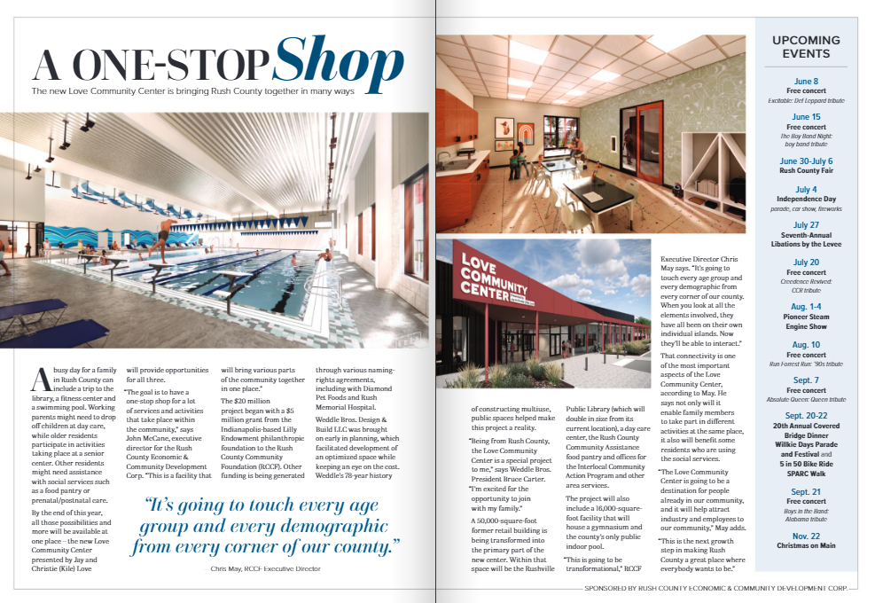 Love Community Center Progress and Updates Website and Sustainability January 6, 2025 We’re getting closer every day to the grand opening! In the meantime check out the brand new LCC website and give them a follow on Facebook for the very latest news, job opportunities, amenities, memberships, and more. Help ensure the LCC’s future by making a gift to the Schroeder Fund for sustainability. RCHS Class of 1974 Supports Schroeder Fund September 13, 2024 Welcome home, friends! The RCHS class of 1974 is in town to celebrate a milestone – their 50th reunion this weekend. As a way to mark their time together, they’ve chosen to support the Schroeder Fund for the sustainability of the Love Community Center. To date they have donated $8,475 – THANK YOU!! Some of them were able to join us for a tour and are beyond excited to see what an incredible blessing this will be for our community. Think they’ll make it to $10,000? We KNOW they can! Make a gift today! Childcare Provider Selected September 13, 2024 Westminster Preschool, based out of Marion, Indiana, has been selected as the childcare provider. They will begin operating their play-based, high-quality early childhood program in the spring of 2025, adding 72 seats for ages birth to 5. Westminster is a Level 4 Paths to QUALITY™ childcare provider, indicating the highest level of quality with national accreditation. With a focus on “play as learning and learning as play,” they nurture each child as the unique individual they are. They describe their approach as “a Christian atmosphere that supports children’s growth and development as lifelong learners in a safe and caring environment.” Their staff are trained in brain development, trauma informed care, and positive guidance. Rushville will be Westminster’s 6th location, with two in Marion and additional sites in Wabash, Fort Wayne, and Portland, Indiana (coming in September). Westminster accepts CCDF and On My Way Pre-K vouchers, making the program accessible to families with financial need. Look for announcements in the coming months regarding childcare enrollment and employment opportunities. Information will be available on their website at westminsterpreschools.org. READ MOREShow less What a Difference a Year Makes September 10, 2024 Loves Come to Town September 4, 2024 We had some very special visitors to the Love Community Center today – Jay and Christie (Kile) Love! It was Christie’s first visit and Jay’s first this year. They are as impressed and excited as we are! Christie said, “It just feels right to support this project.” We are certainly blessed by their generosity. They also got to meet Zuzi, the new director, and discovered they even have some friends in common. It’s a small world. The details are filling in – just like the pool with its fill test in progress! Tile and chlorine to be added later. Check out some of the lighting fixtures in the library, refrigerated cases for the food pantry, basketball goal hardware, and scoreboards. It won’t be long now. « ‹ of 8 › » Meet the New Director, Zuzana Smith! August 28, 2024 The board of directors of the Love Community Center (LCC) is excited to announce they have hired a director, Zuzana Smith. Smith and her family came to Indiana from Utah. Zuzi, as she goes by, has spent more than seven years managing all aspects of several outdoor recreation properties. With her experience she brings an impressive skill set – facility management, budget oversight, hospitality, staff training and development, and community collaboration. The Smiths moved to Rush County in May of this year when her husband, Nick, secured a position at Diamond Pet Foods. They are thrilled to be living closer to his family and for the opportunity to own land. Their dream has been to raise their two boys alongside farm animals and a garden of their own. They recently purchased an old farmhouse with acreage and the requisite seven layers of wallpaper, which is keeping them busy. “We’re calling it a restoration, not a remodel,” she smiled. Very friendly and approachable, Smith has a talent for making others feel at ease, even as a newcomer. Her self-confidence shines through authentically yet unassumingly. She’s immediately likeable. Building community is a core value that drives Zuzana Smith. And one that meshes perfectly with this decades-long, community-driven dream about to become reality. “If I had to pick one word to describe myself, it would be ‘host,’” she reflected. “Serving others and fostering welcoming, friendly environments where people can connect and share new experiences truly energizes me. Nurturing community is about more than just bringing people together; it’s about creating a space where individuals can feel valued and supported. It’s about building a foundation where every member can thrive, learn from one another, and feel secure,” she shared. “As I step into the role of the Director at the Love Community Center, I am excited to bring this passion and experience to the forefront. Being the first director is both an honor and a significant responsibility. It means laying the groundwork for a legacy that will last for many generations,” she added. Smith will oversee the operations, working closely with the partner agencies located inside the LCC. She will hire, train, and work alongside staff and volunteers. She will manage the budget, accounting, and all human resources needs. She will also promote the facility and fundraise for its sustainability. Ensuring satisfaction and fostering the well-being of guests, partners, staff, and volunteers alike will be the heart of her work, a calling that’s important to her both professionally and personally. She purposefully chose her office space so it will be centrally located and highly-visible – literally. One wall is all windows, a fitting metaphor for the transparency and openness Smith will bring to her role. “I want the comm