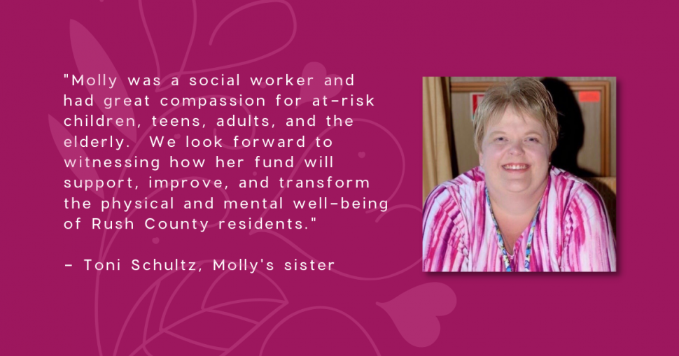 Molly Spaeth Fund for Transformation and Well-Being Established 1st July 2021 The family of Molly Kay Spaeth has established a fund at the Rush County Community Foundation in her memory. “The Molly Spaeth Fund for Transformation and Well-Being was created with the mission that the funds would remain in Rush County and support diverse service organizations and programs,” shared Toni Schultz, Molly’s sister. It will provide support for projects and programming that improve the social and/or mental well-being and betterment of individuals locally. A Rushville native, Molly graduated from Indiana University in 2014 with a Bachelor of Arts in Social Work. She served as the Social Service Director at Waldron Rehab & Healthcare in Waldron, IN until her health would no longer permit. “Molly was a social worker and had great compassion for at-risk children, teens, adults, and the elderly. We look forward to witnessing how her fund will support, improve, and transform the physical and mental well-being of Rush County residents,” Toni said. Friends and family fondly remember Molly as a bright light – full of fun, joy and kindness. Her beautiful, perennial smile touched all who knew her. She is treasured by her parents, Bob and Jeanie Spaeth; four sisters; two brothers; many nieces and nephews and countless friends. “The RCCF has been a huge blessing to our family over the previous 10 years. My children, nieces, and nephews have been recipients of multiple RCCF college scholarships. I, too, have received educational grants that have helped fund my classroom. Creating a memorial in Molly’s name is a great way for my family to ‘pay it forward’,” explained Toni. The outpouring of support for the Spaeth family and this fund has been incredibly touching. In less than a month since Molly’s passing, it surpassed the required amount of $10,000 for distribution of funds into grants. We are grateful to the community for its kindness and generosity! “Molly was a bright light while here on earth. She continues to shine bright through her legacy and in heaven. She had so much love to give,” recalled her friend, Maddie. Molly’s love and compassion for her community will live on through her fund. If you would like to make a donation to support the Molly Spaeth Fund for Transformation and Well-Being, please visit our donation page or mail/drop off a check at the RCCF office: 117 N. Main Street, Rushville, IN 46173. If you desire, we will notify anyone you specify of your gift. Thank you!