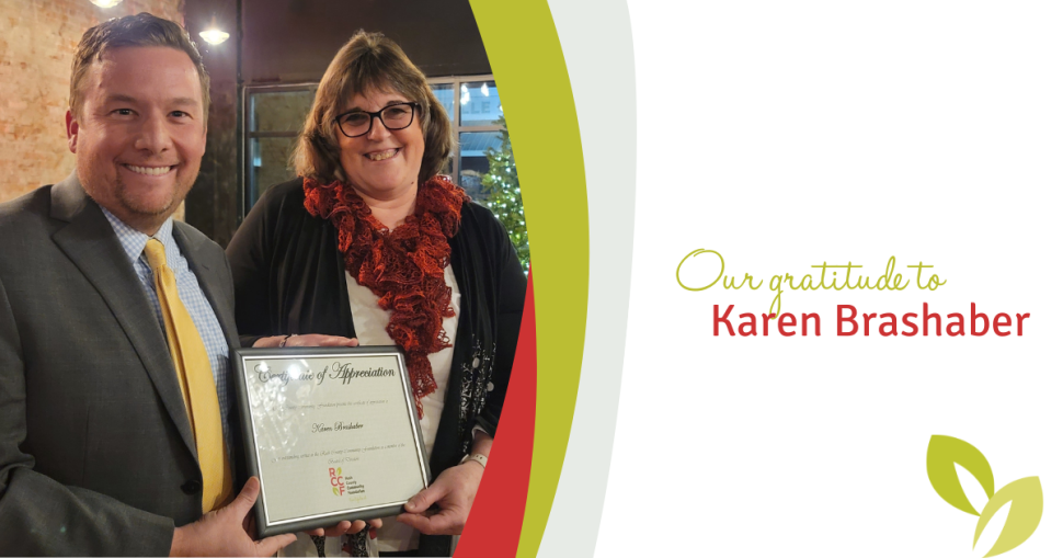 Our Gratitude to Outgoing Board Member, Karen Brashaber 17th January 2024 It’s always bittersweet when board members’ terms end. That’s certainly true of Karen Brashaber. With teary eyes at our holiday party she told us, “It has been such an honor to serve an organization that has given so much to my family personally. (Karen’s son, James, was the 2013 Lilly Endowment Community Scholar.) When I started with the Foundation, I didn’t know anything about the wonderful grants that are awarded. I just knew of the scholarships,” she admitted. Karen quickly learned the ins and outs of RCCF’s work and proved to be a wonderful asset to our organization. A mathematician by training, she’s equally as gifted as a writer. She’s comfortable and effective in both leadership and support roles. Karen has a knack to digest any discussion and deliver a commonsense opinion that garners consensus. But most importantly she has a true servant’s heart. She served two 3-year terms in a wide variety of capacities, most recently as Board President. She was both Vice President and Secretary. She has served on the Executive, Scholarship, and Lilly Scholarship Committees and chaired the Donor Engagement Committee for several years. She helped lead us through the search for an executive director, hiring Chris. She was a key contributor to the Lilly Endowment Large Scale Grant application that was awarded $5M and jumpstarted the REC Center. Quite an impressive resume, especially considering she is a volunteer. We’re so grateful for all the hard work, heart, and soul Karen has put into everything she’s accomplished at RCCF! As much as we’ll miss having her in board meetings, we’re not letting her go too far. She’ll remain on the Scholarship and Donor Engagement Committees.