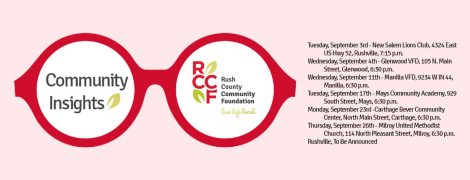 Rush County Community Insight Sessions Coming Soon! 30th August 2019 The Rush County Community Foundation values the input of the citizens of Rush County! As one part of the Lilly Endowment GIFT VII initiative, the RCCF would like to invite you to attend a Community Insight program in your area of the county. You may attend as many as you want, but we appreciate everyone who can attend at least one session. The scheduled sessions are: Tuesday, September 3rd—New Salem Lions Club, 4324 East US Hwy 52, Rushville, 7:15 p.m. Wednesday, September 4th—Glenwood VFD, 105 N. Main St., Glenwood, 6:30 p.m. Wednesday, September 11th—Manilla VFD, 9234 W IN 44, Manilla, 6:30 p.m. Tuesday, September 18th – Mays Community Academy, 929 South St., Mays, 6:30 p.m. Monday, September 23rd—Carthage—Bever Community Center, N. Main St., Carthage, 6:30 p.m. Thursday, September 26th, Milroy United Methodist Church, 114 N. Pleasant St., Milroy, 6:30 p.m. Rushville, To Be Announced • The goal of these Community Insight sessions is to see what we like, love, and want to love about our community. • The (facilitated by Ball State) meeting is scheduled to last 1 hr. and 15 mins. • Made available through funding from the Lilly Endowment GIFT VII initiative, communities across the state are embarking on a variety of sessions to engage their communities. • The RCCF can APPLY FOR a LARGE grant from the Lilly Endowment and this is part of the discovery portion to direct our efforts. It could have an amazing impact on our entire community IF we are awarded the grant. • All the sessions will be open to the general public. Involved youth to our most mature citizens are encouraged to attend and voice their opinions. • We encourage you to share the information with others in your community as well, and thank you in advance for helping secure the success of our sessions. Please share information about these sessions with your friends and neighbors. Our efforts can only be successful with your input! Should you have questions prior to the sessions, please call (765)938-1177 or email info@hopeful-franklin.159-203-167-124.plesk.page. We look forward to seeing you at a Community Insight session!